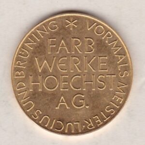 This gold medal was issued to commemorate 100th Anniversary of Farbwerke Hoechst AG.