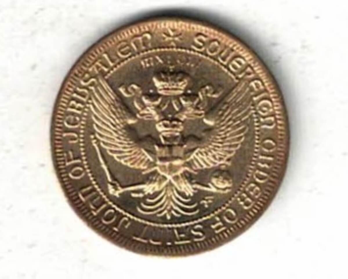 The obverse features the arms of a sovereign order of Saint Join MXLVIII. The reverse features the Maltese Cross.