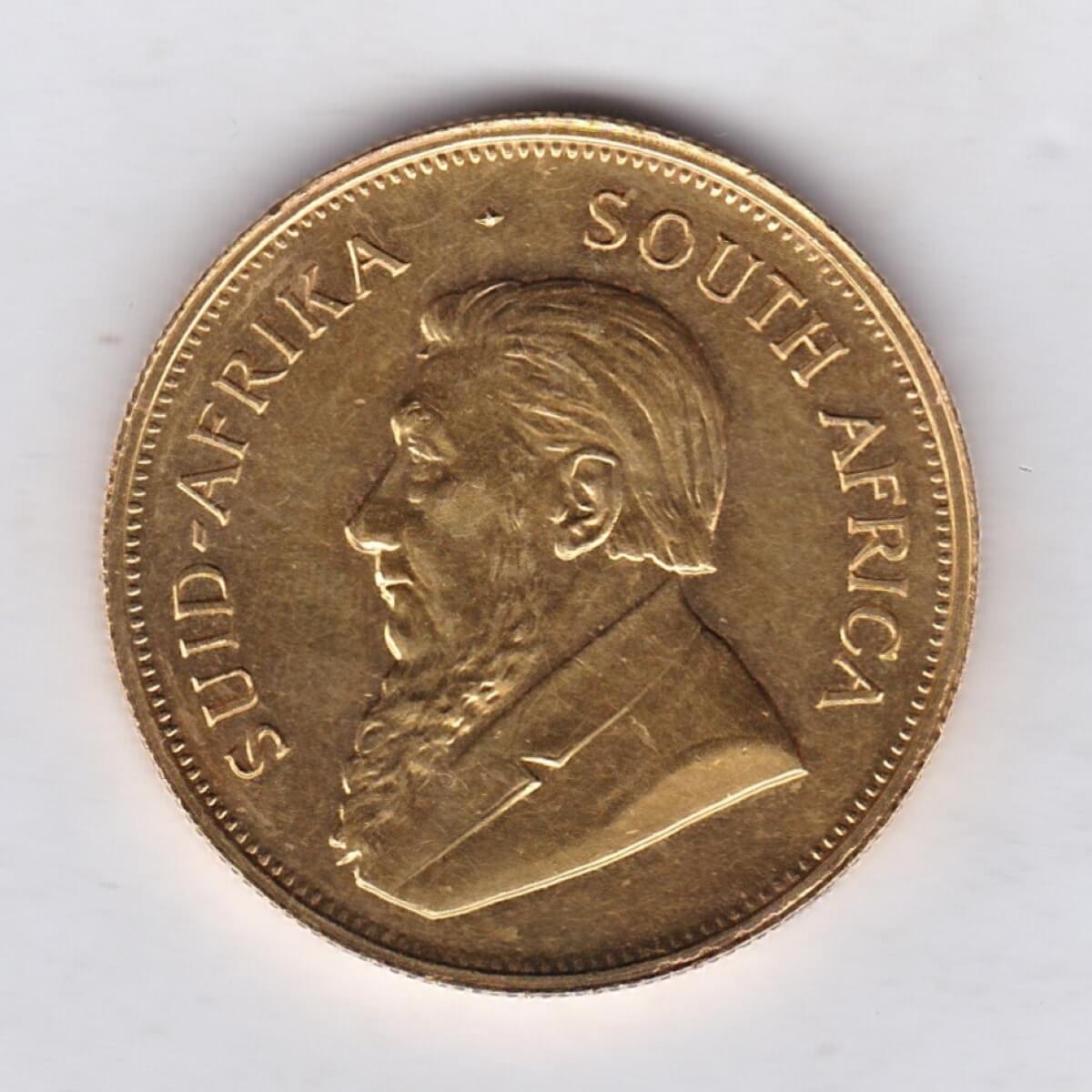 In 1967 the South Africa mint and rand refinery struck the very first gold one ounce Krugerrand, the coin was struck in 22 carat gold and weighs approx. 33.93 grams.