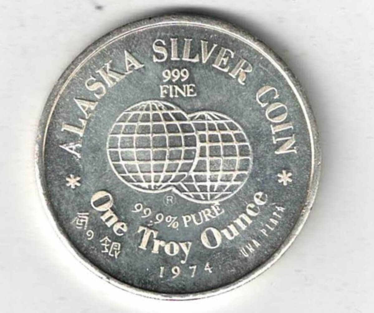 1974 Alaska Silver One Ounce Round In Near Mint Condition.