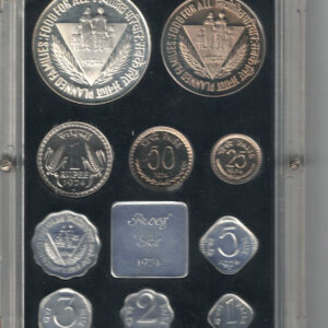 1974 India Ten Coin Proof Set With Collector Medal In Near Mint Condition.