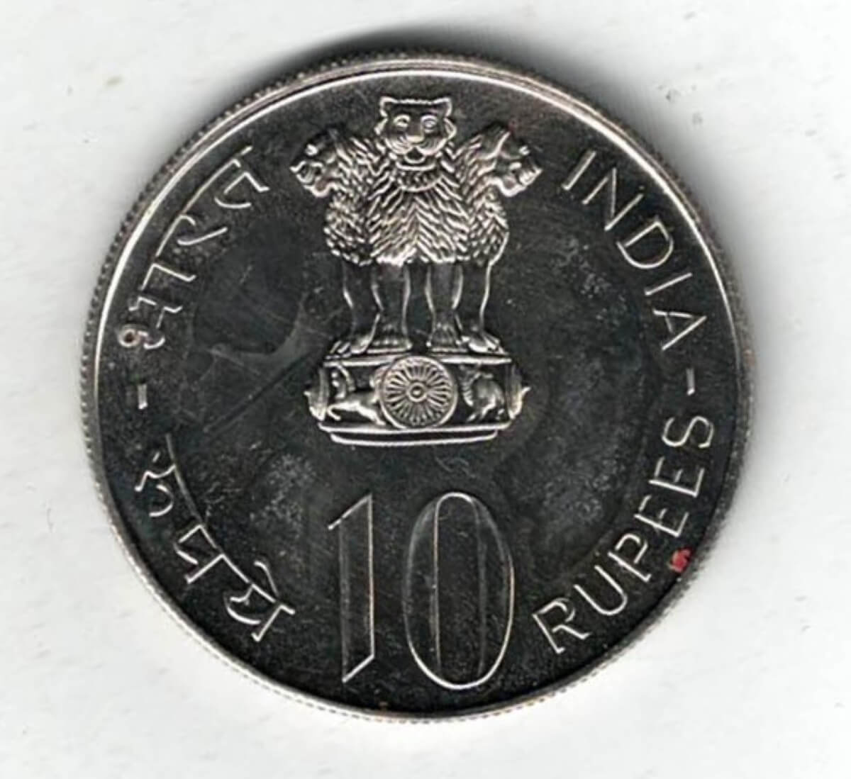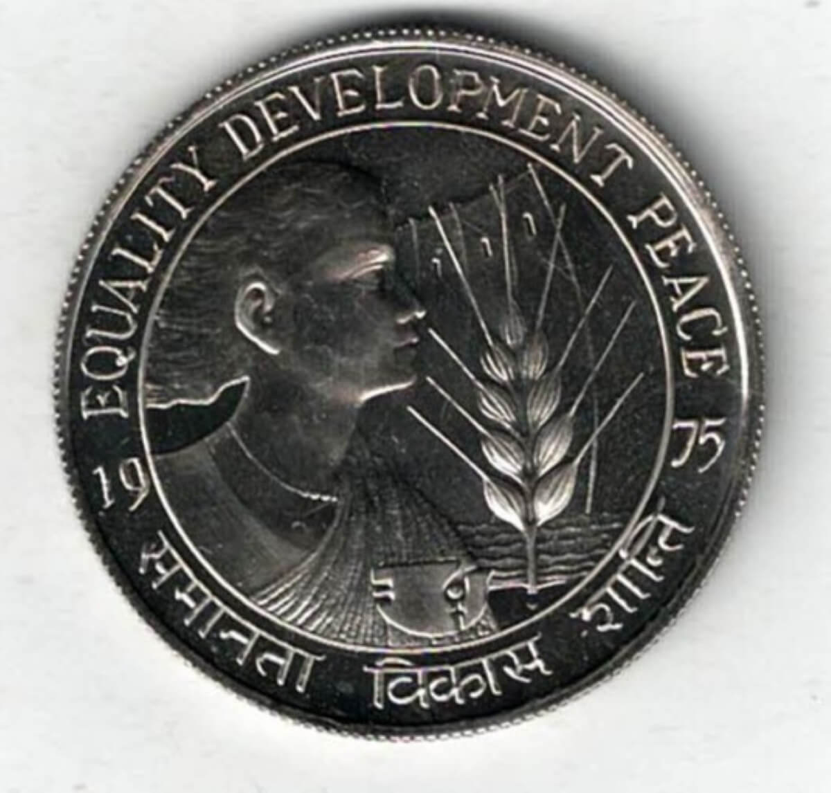 1975 India Women’s Year Nickel Ten Rupee Coin In Near Mint Condition.