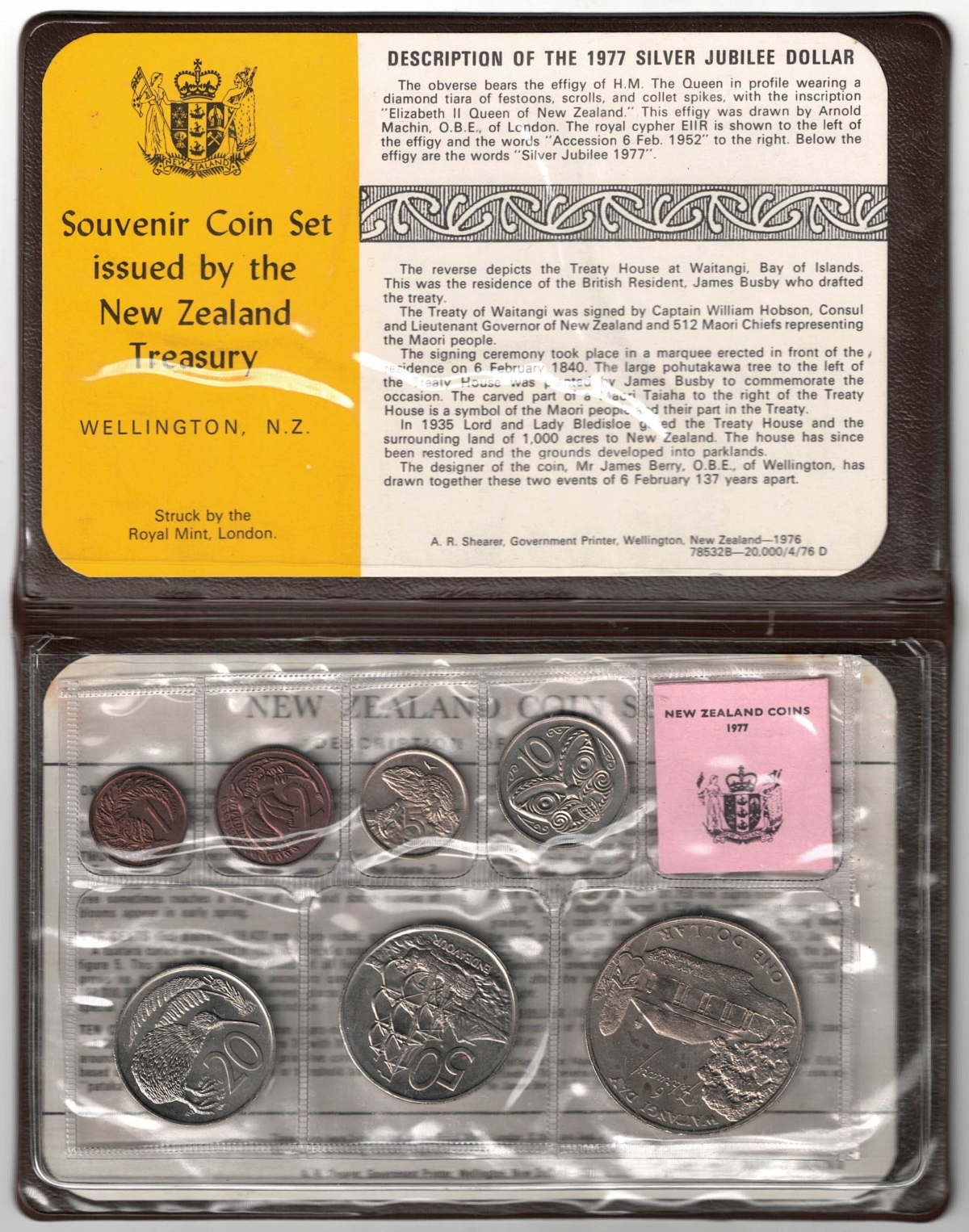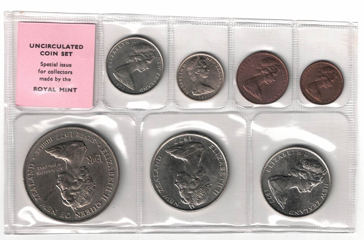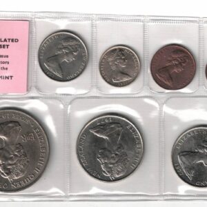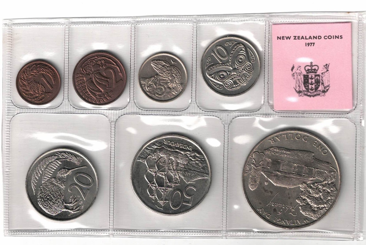 1977 New Zealand Brilliant Uncirculated Seven Coin Set In Near Mint Condition.