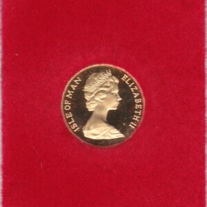 The Isle Of Man sovereign was struck in 22 carat gold by the Pobjoy Mint. This coin features the portrait of Queen Elizabeth II facing right on the obverse. The Triskeles on shield, enwreathed on the reverse.
