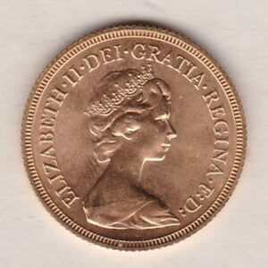 The 1982 sovereign is a coin struck in 22 carat gold by the Royal Mint. The obverse of this coin features the second crowned portrait of HM Queen Elizabeth II facing right. The Queen is wearing the Girls of Great Britain and Ireland tiara, with legend around. The reverse depicts St. George slaying the dragon, with the date and designer’s initials in exergue.