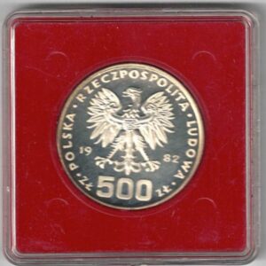 This 1982 Silver five hundred zlotys coin was struck in Warsaw, Poland and had a mintage of 25,000.