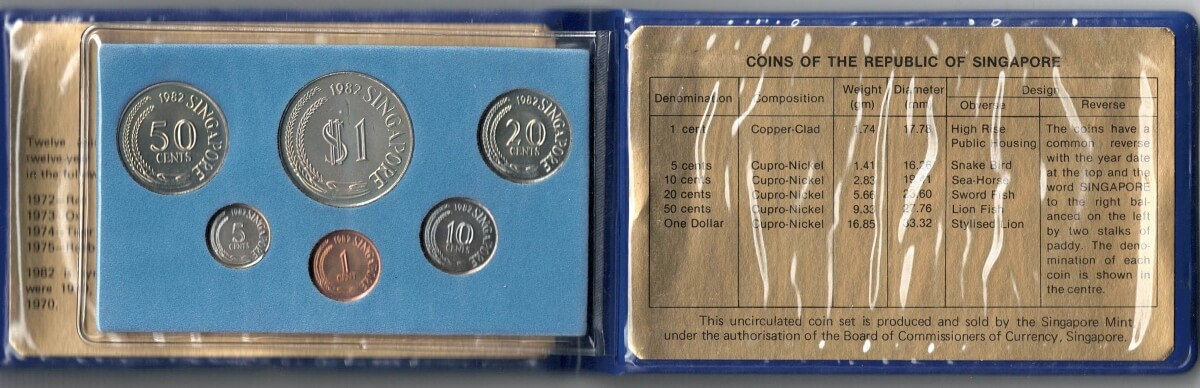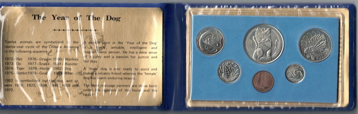 1982 Singapore Brilliant Uncirculated Six Coin Year Of The Dog Set In Near Mint Condition.