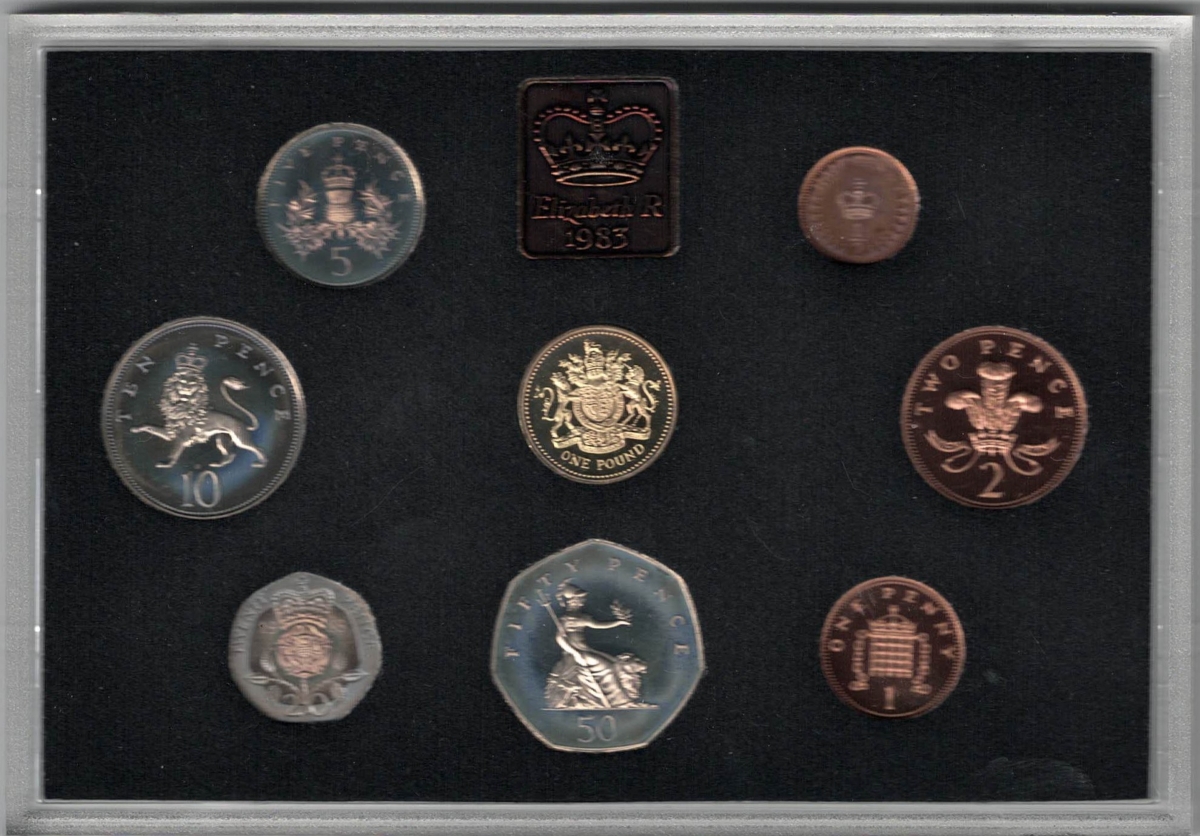 1983 Royal Mint Base Metal Eight Coin Standard Proof Set In Near Mint Condition.