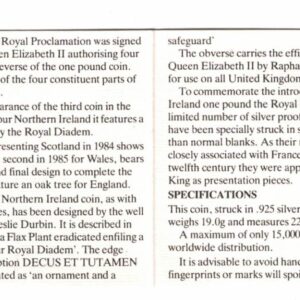 1986 One Pound Piedfort Silver Proof ‘Northern Irish Flax’ Coin In Near Mint Condition.