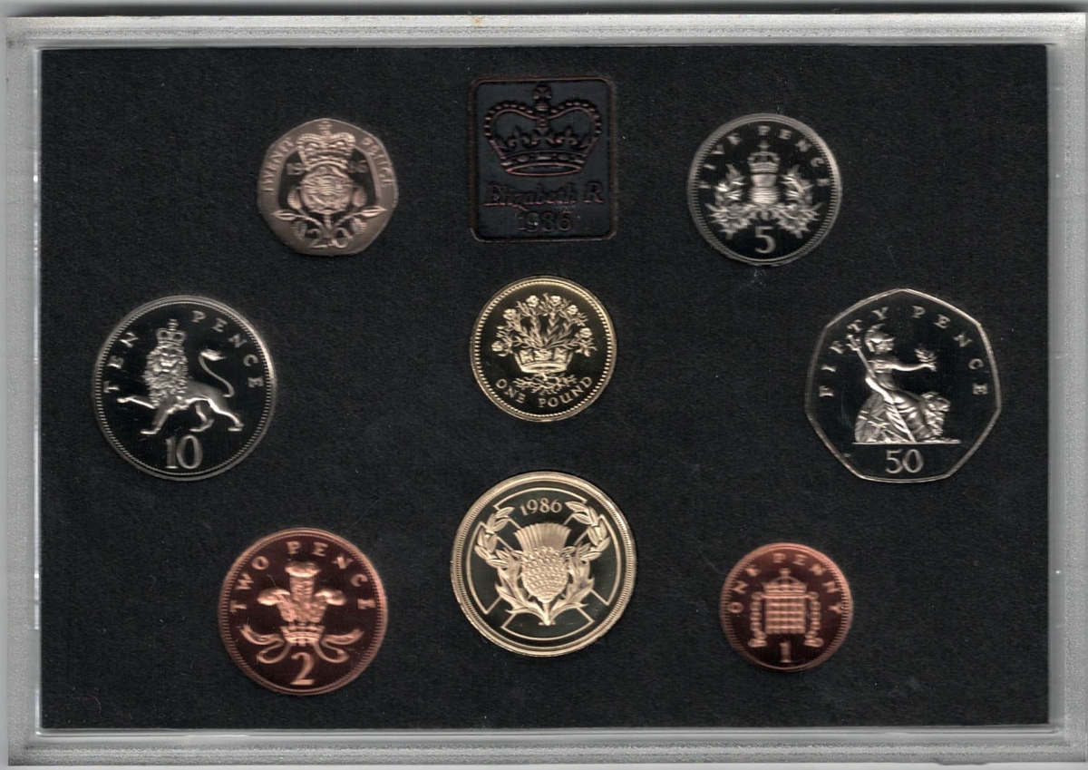 1986 Royal Mint Base Metal Eight Coin Standard Proof Set In Near Mint Condition.