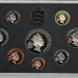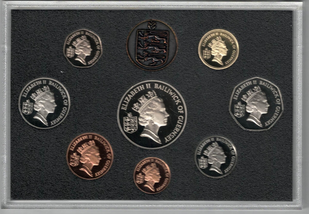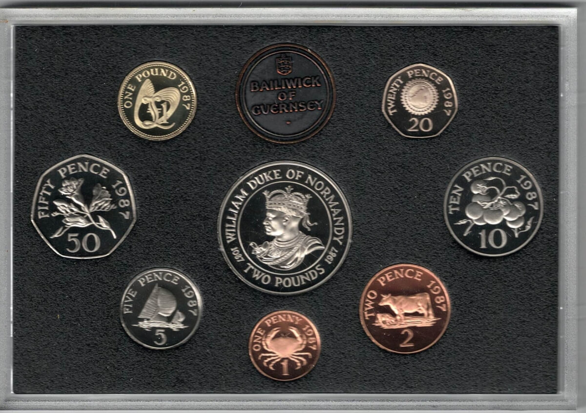 1987 Guernsey Eight Coin Proof Set In Near Mint Condition.