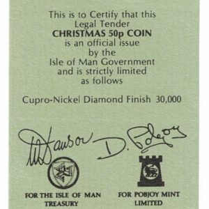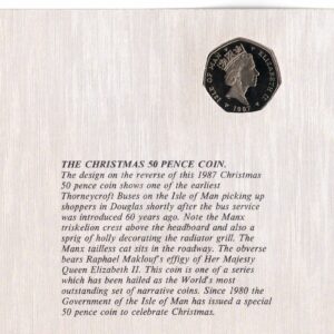 1987 Isle Of Man Christmas Fifty Pence Thorneycroft Bus In Christmas Card In Near Mint Condition.
