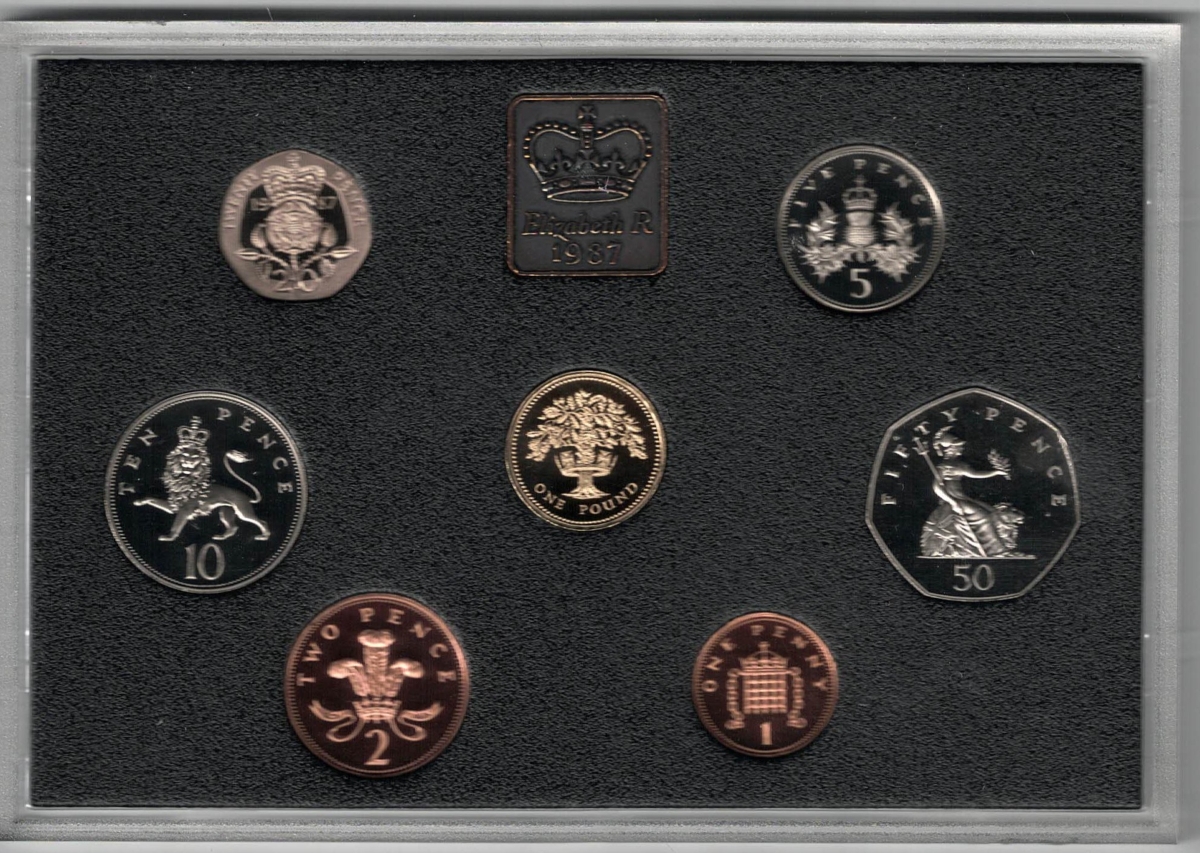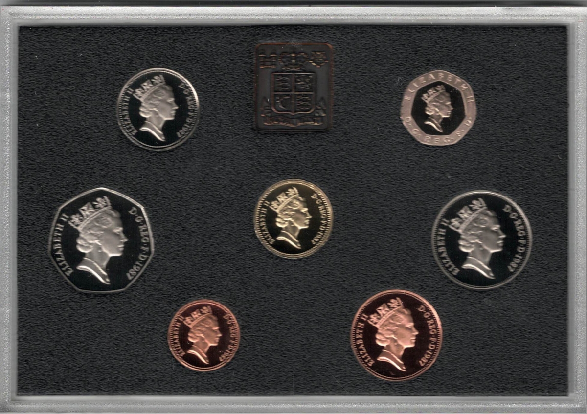 1987 Royal Mint Deluxe Base Metal Seven Coin Proof Set . This 1987 set comes in a red leather outer. All coins are in stock for despatch.1987 Royal Mint Deluxe Seven Coin Proof Set