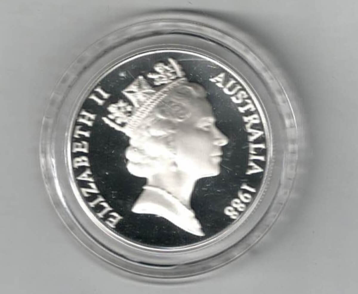 The obverse features Queen Elizabeth II facing right. the reverse features three ships of the first fleet.