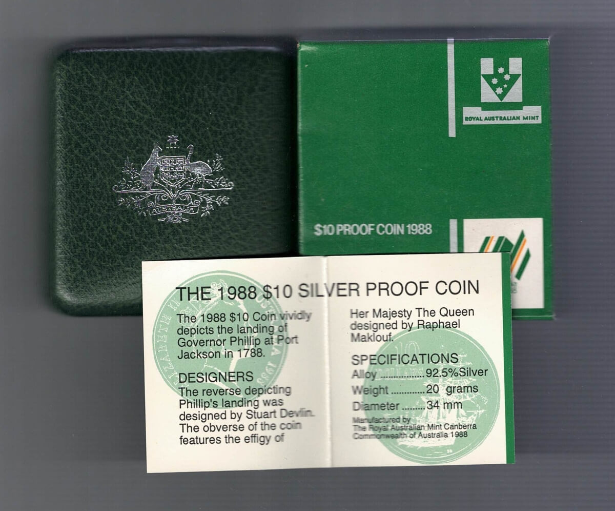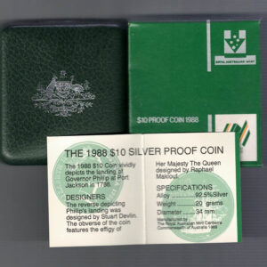 1988 Australia First Fleet Silver Proof Ten Dollar Coin In Mint Condition.