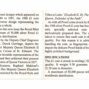 1988 One Pound Silver Proof ‘Crowned Shield’ Coin In Near Mint Condition.