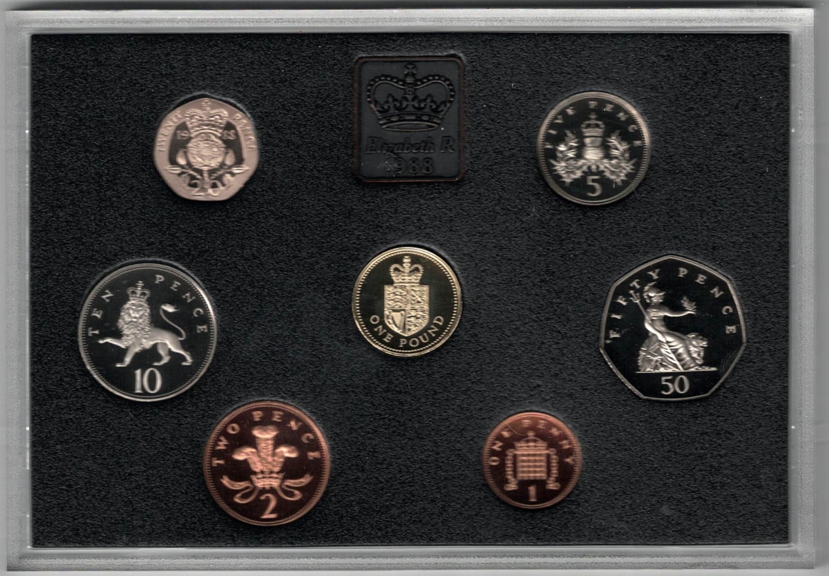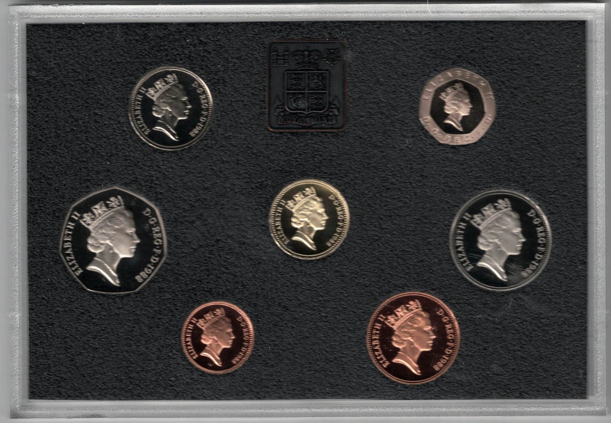 1988 Royal Mint Base Metal Deluxe Seven Coin Proof Set In Near Mint Condition.