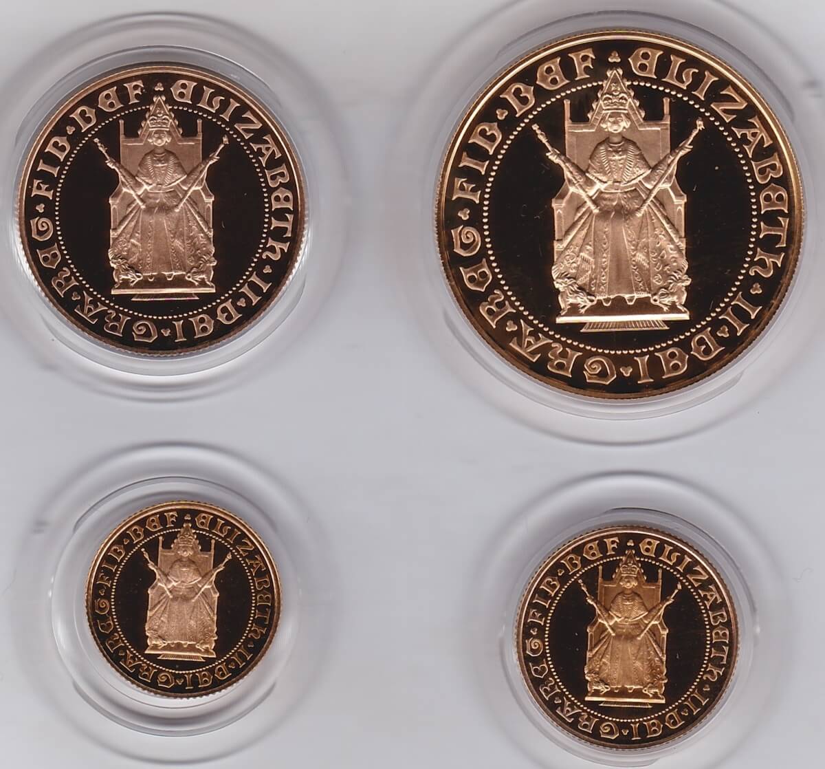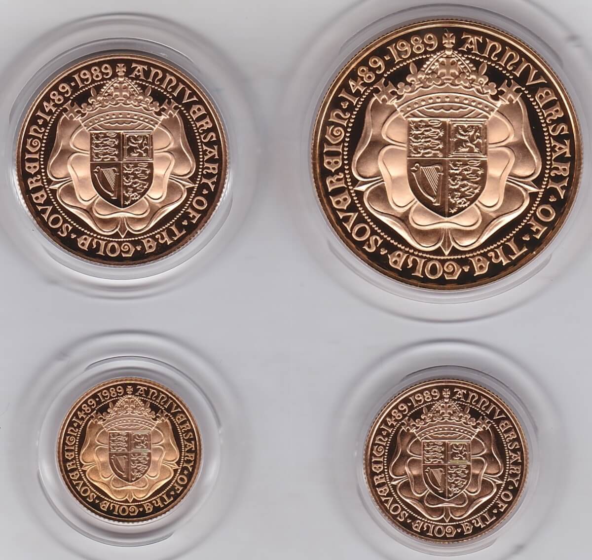 1989 Queen Elizabeth II Four Coin Gold Proof Sovereign Set.