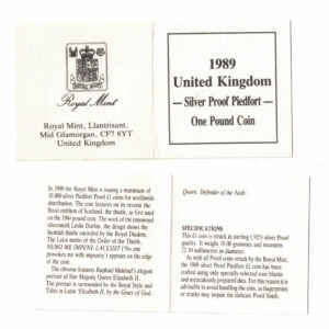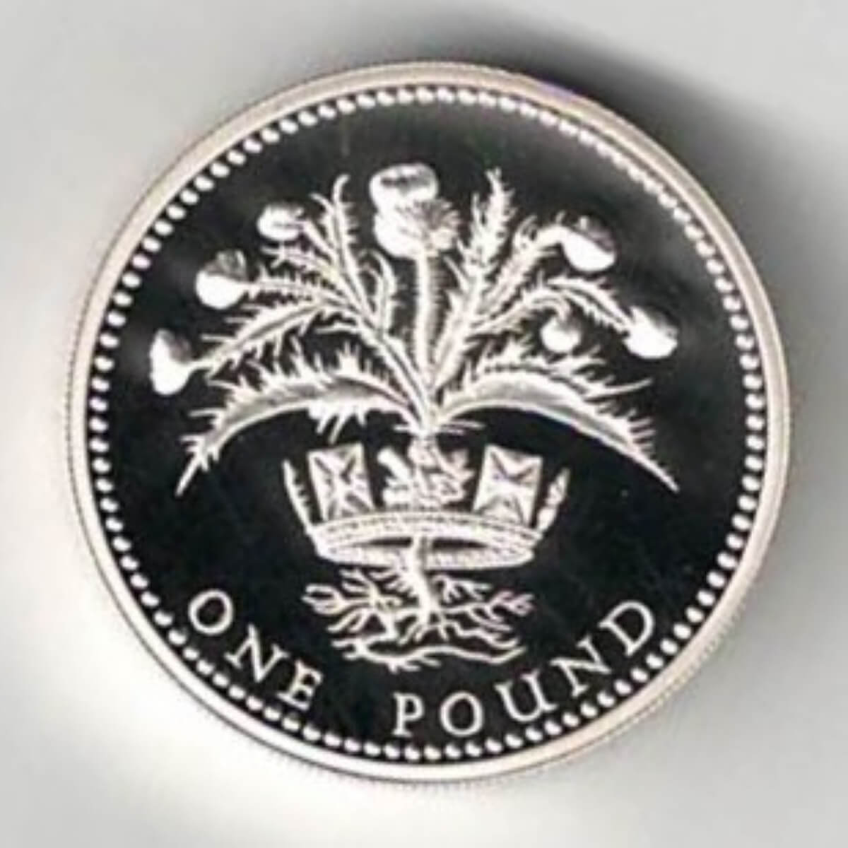 1989 One Pound Piedfort Silver Proof ‘Scottish Thistle’ Coin In Near Mint Condition.