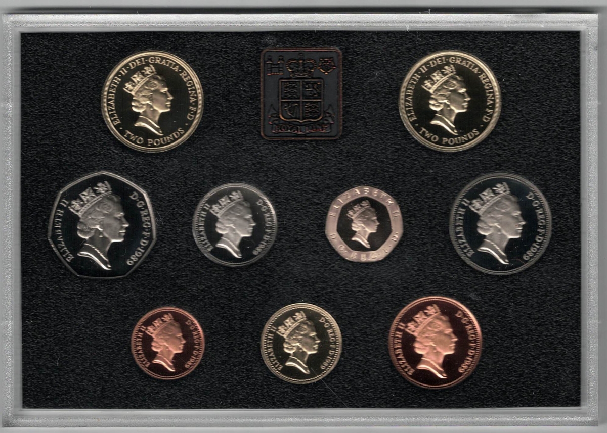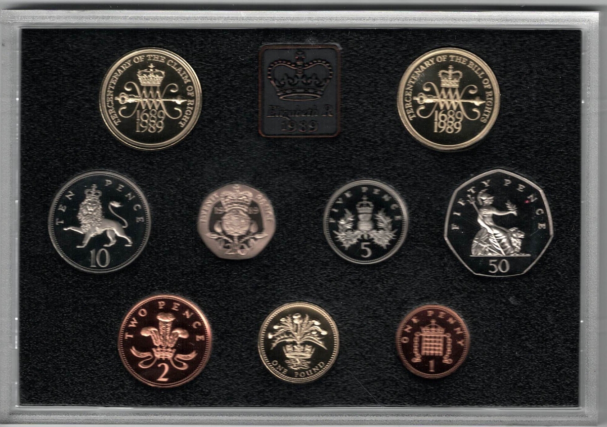 1989 Royal Mint Deluxe Base Metal Nine Coin Proof Set . This 1989 set comes in a red leather outer. All coins are in stock for despatch.1989 Royal Mint Deluxe Nine Coin Proof Set