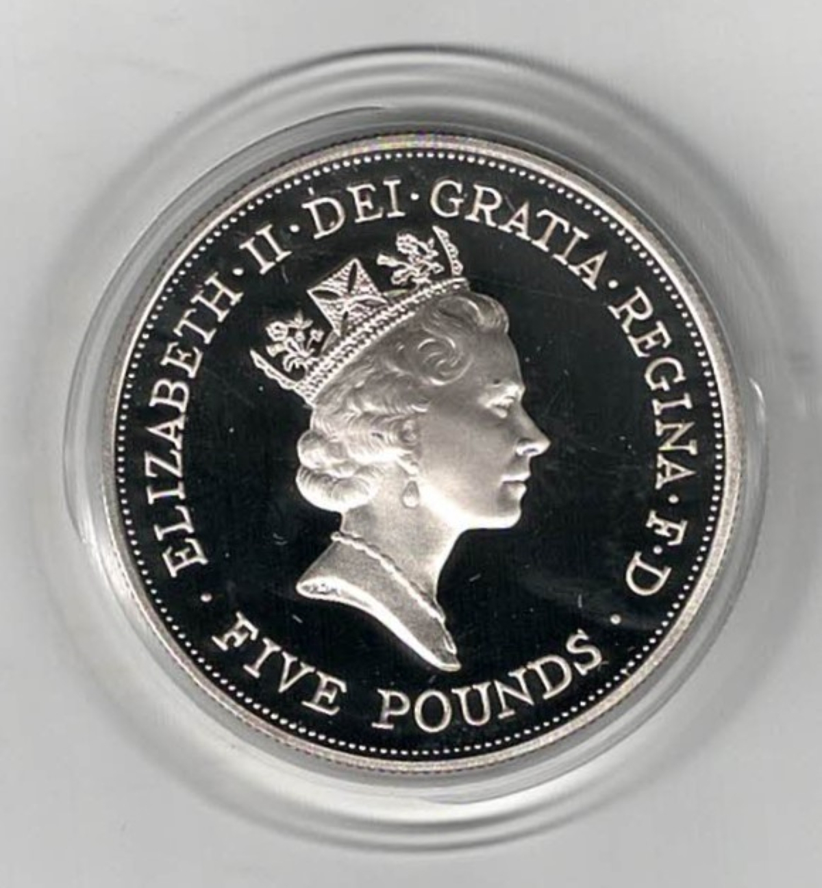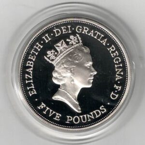 1990 Five Pound Silver Proof Coin ‘Her Majesty Queen Elizabeth The Queen Mother 90th Birthday’, In Near Mint Condition.