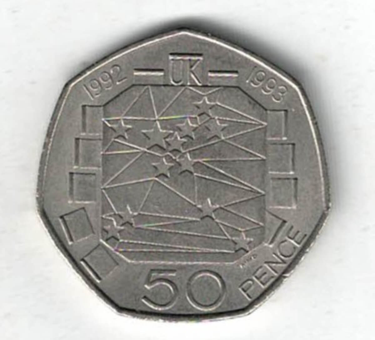 This 50 Pence coin was struck to celebrate the UK’s Presidency of the EU and the completion of the European Single Market in 1993.