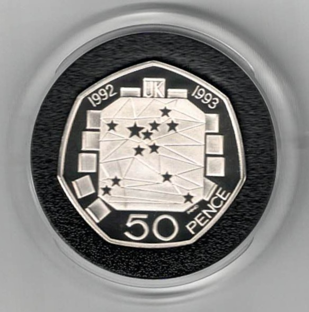 1992-1993 Piedfort Silver Proof Fifty Pence Coin ‘European Community’ in Near Mint Condition.
