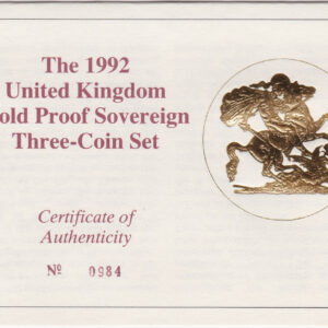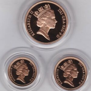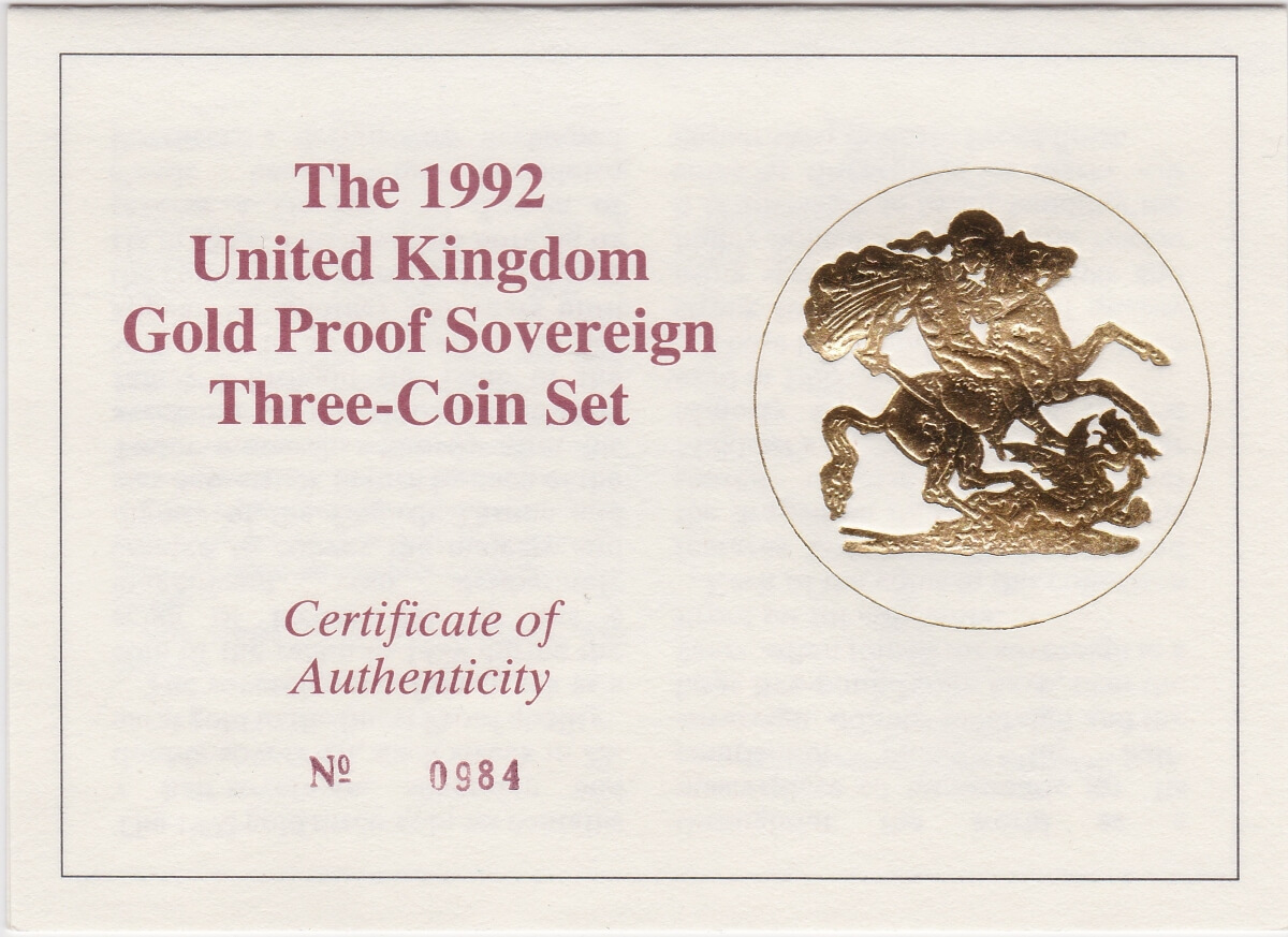 1992 Queen Elizabeth II Gold Proof Three Coin Sovereign Set.