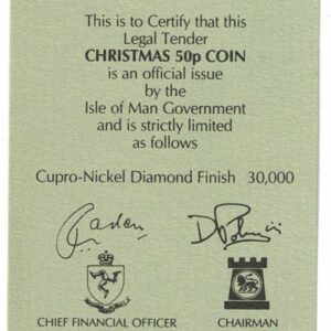 This coin is housed in a Christmas card with certificate.