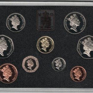 The coins in this set contains the range of UK coins from the 1p to the £1. Each Coin in this collection features the portrait of the Queen Elizabeth II. This set includes the commemorative issue of the fifty pence marking the British Presidency of European Council of Ministers.