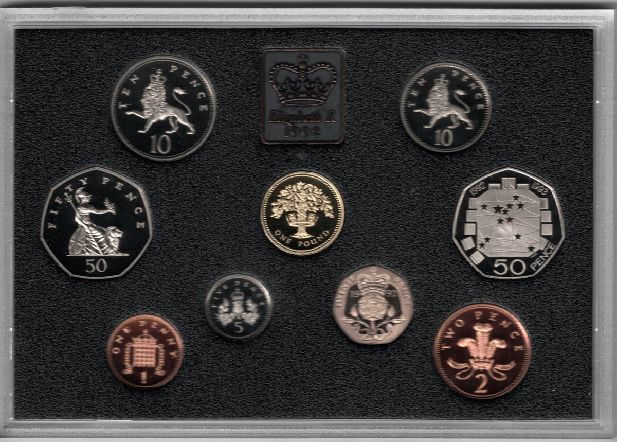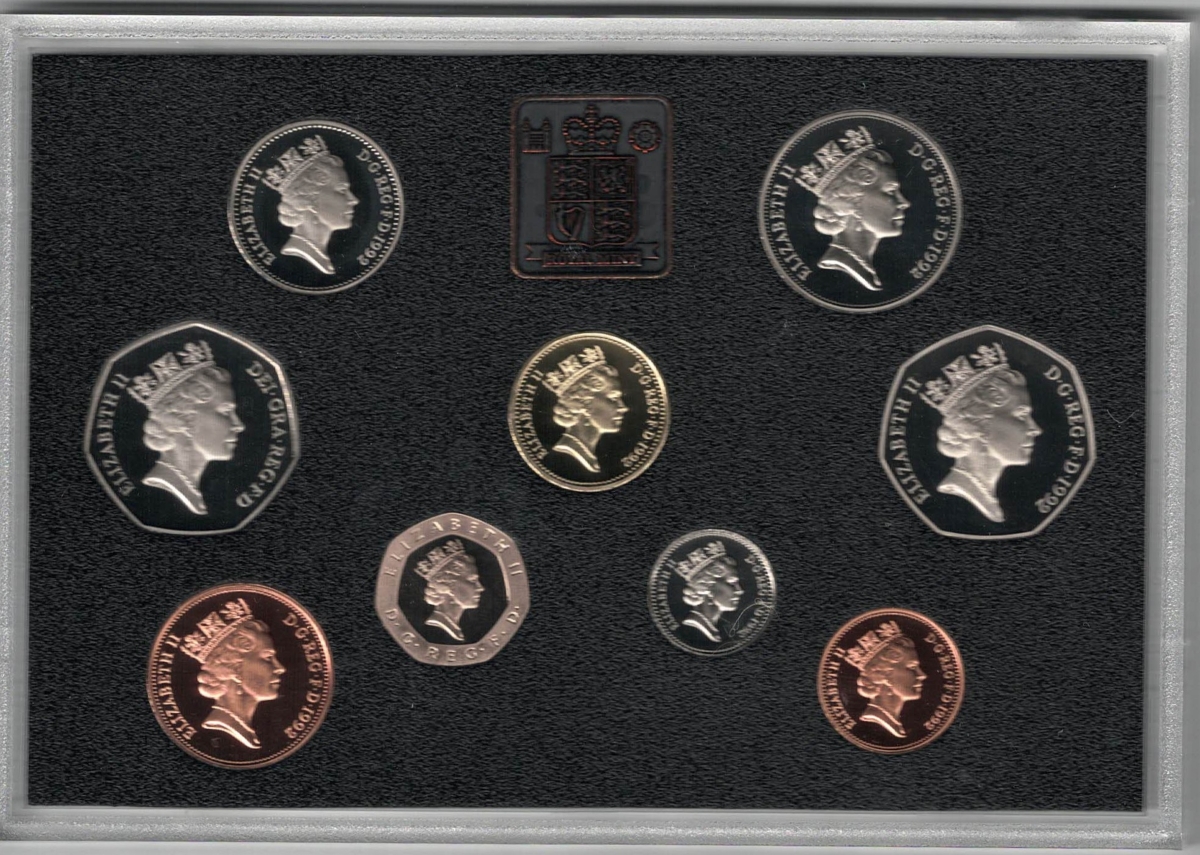 1992 Royal Mint Base Metal Nine Coin Standard Proof Set In Near Mint Condition.
