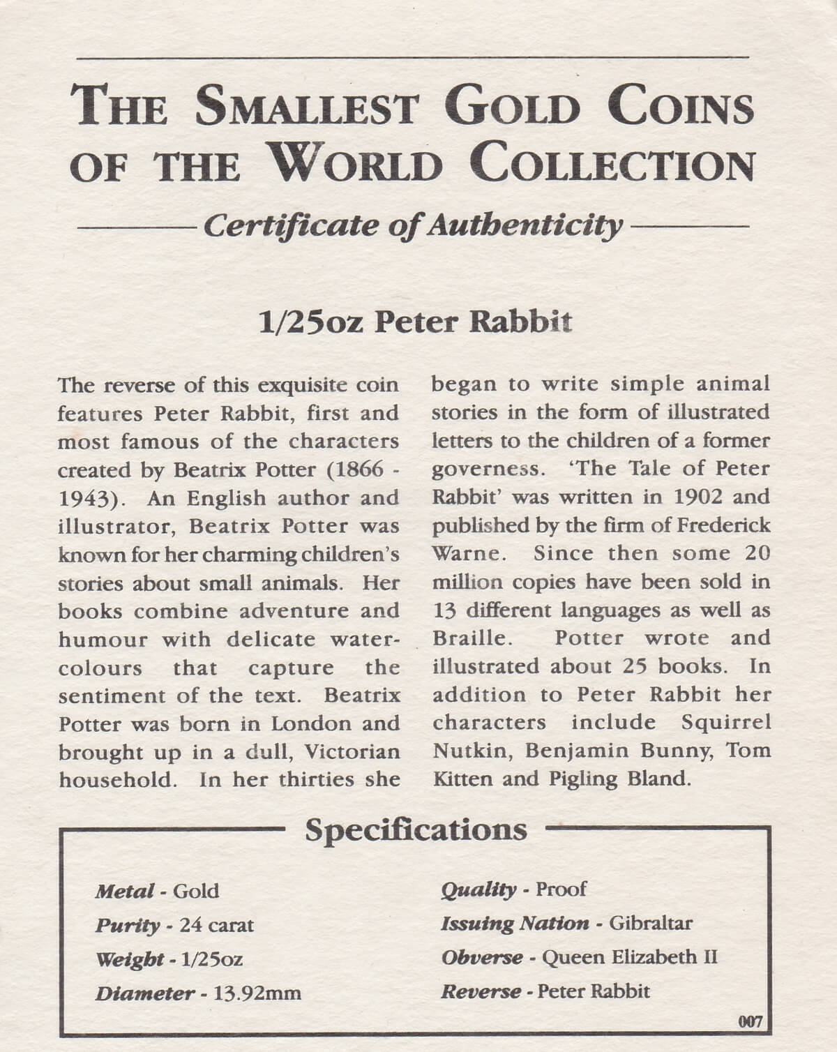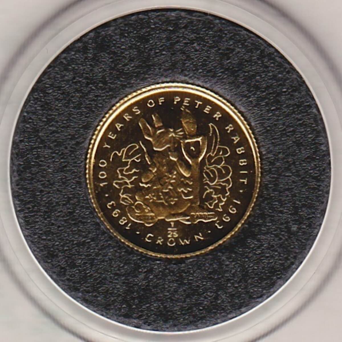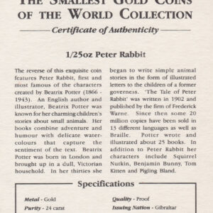 This coin was issued to celebrate ‘The Tales Of Peter Rabbit. The reverse depicts an image of Peter Rabbit. The obverse features Queen Elizabeth II.