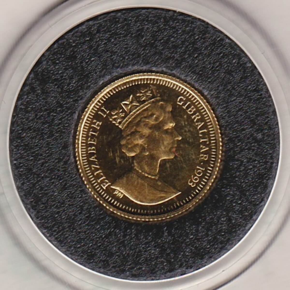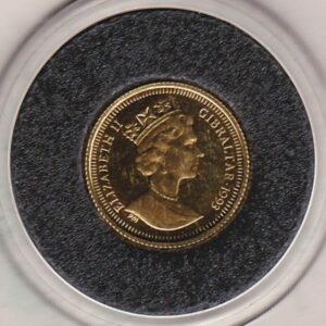 1993 Gibraltar Gold Proof Twenty Fifth Ounce Coin In Near Mint Condition.