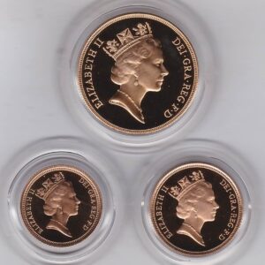 1993 Queen Elizabeth II Gold Proof Three Coin Sovereign Set.
