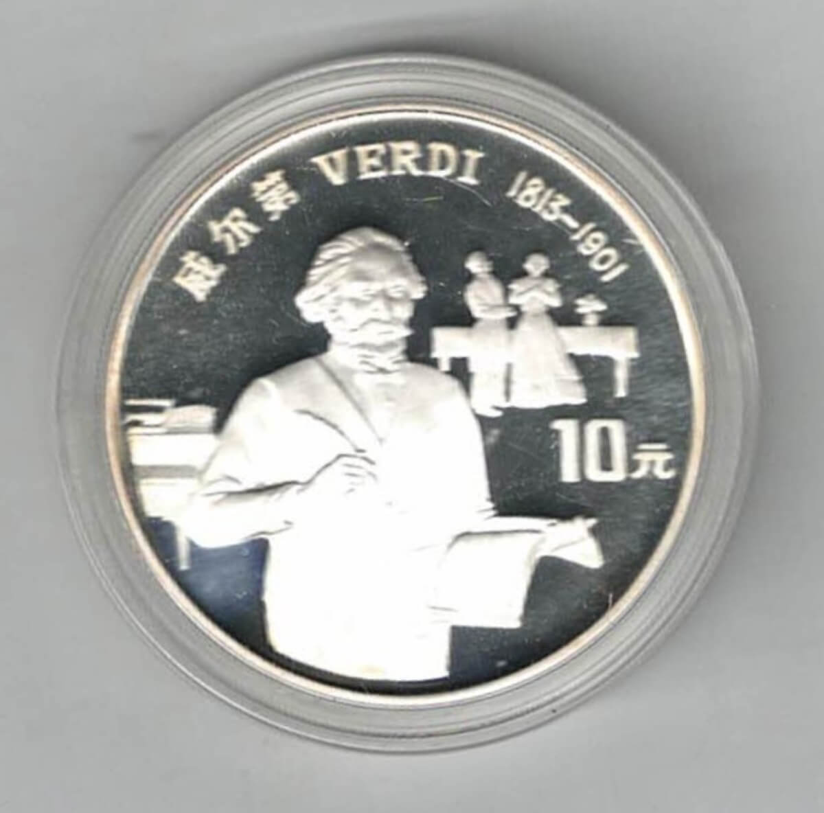 1994 China Silver Proof Giuseppe Verdi Ten Yuan Coin In Near Mint Condition.