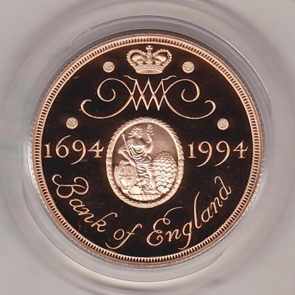 The coin was issued to commemorate the 300th anniversary of the Bank of England.