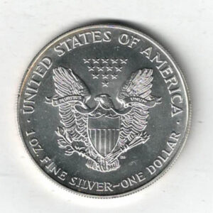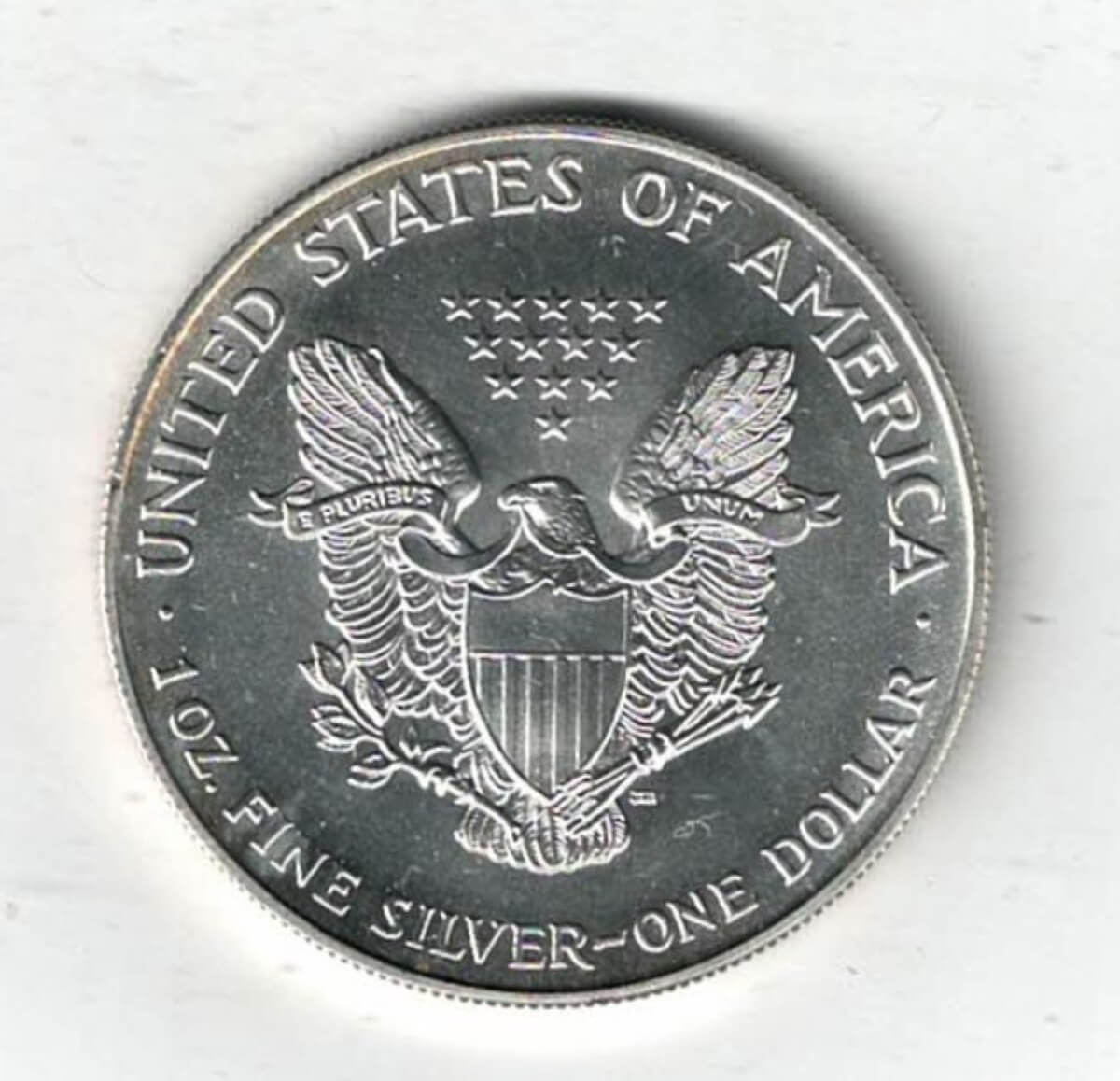 1994 Silver USA One Ounce Eagle. The liberty is on the obverse, The eagle is on the reverse. The coin contains one ounce of 999 fine silver.1994 Silver USA One Ounce Eagle Coin
