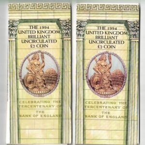 2x 1994 Two Pound brilliant uncirculated coins.