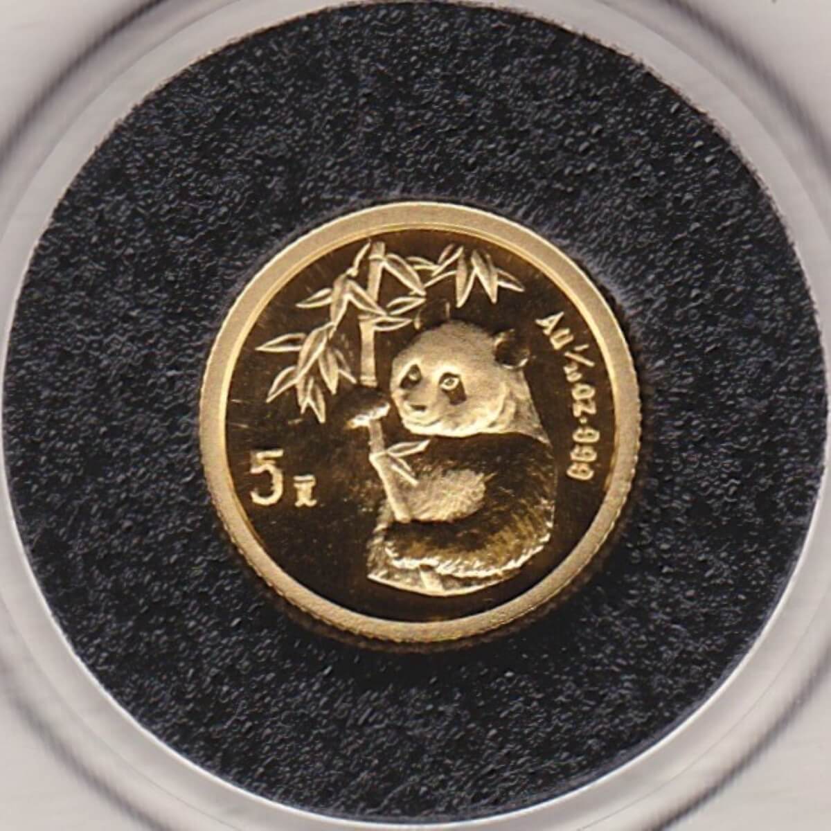 The Gold Twentieth Ounce Panda coin was struck in 999 Fine Gold and weighs approx. 1.56 grams.