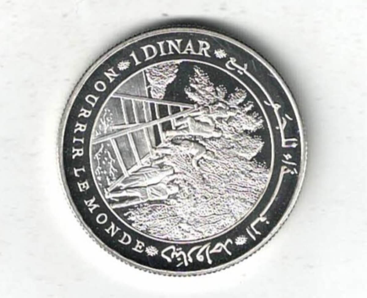 1995 Tunisia Silver One Dinar FAO Coin In Near Mint Condition.