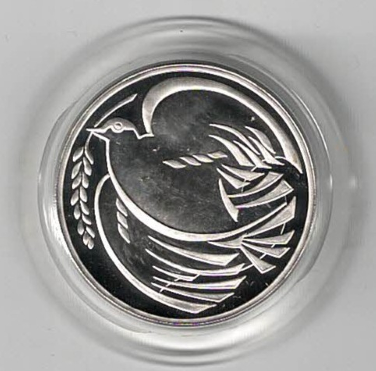 The Obverse features Queen Elizabeth II facing right, The Reverse features a large dove left with olive branch.