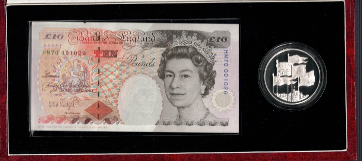 You will receive the 1996 Five Pound Silver Proof Coin & Ten Pound Banknote Set in the pictures.