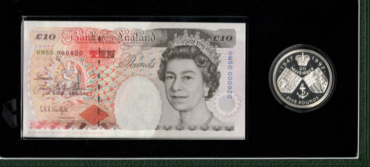 1997 Coin & Banknote set, to mark ‘Her Majesty Queen Elizabeth II & Prince Philip Golden Wedding’, In Mint Condition.