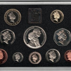 The coins in this set contains the range of UK coins from the 1p to the £5. Each Coin in this collection features the portrait of the Queen Elizabeth II on the Obverse. All coins in this collection have been struck to Proof Quality.