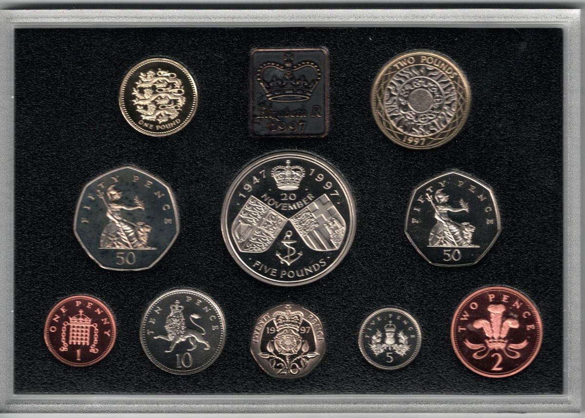 1997 Royal Mint Base Metal Deluxe Ten Coin Proof Set In Near Mint Condition.