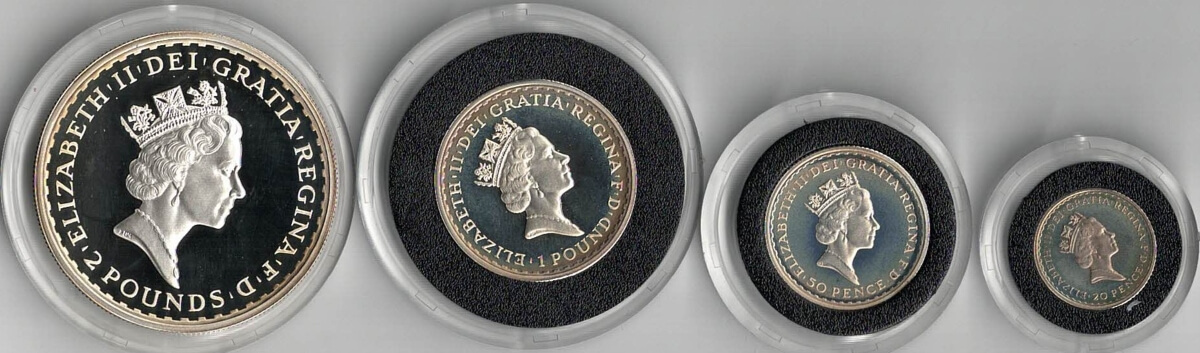 1997 Elizabeth II Silver Proof Four Coin Britannia Set.