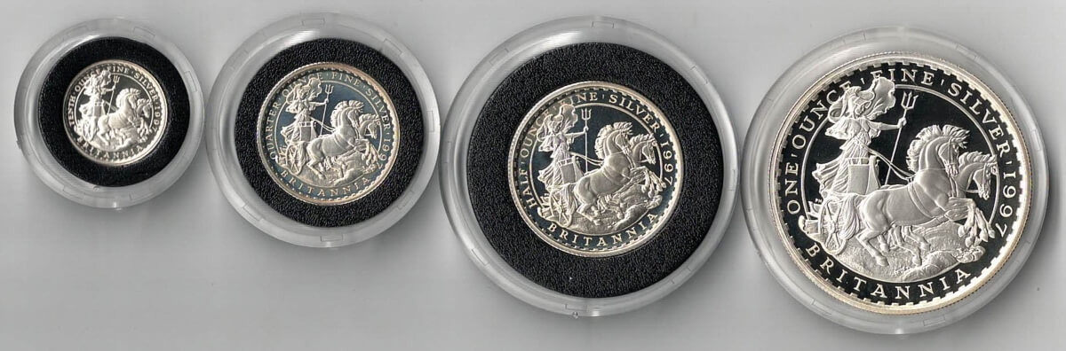 You are buying the 1997 silver four coin Britannia set in the pictures.