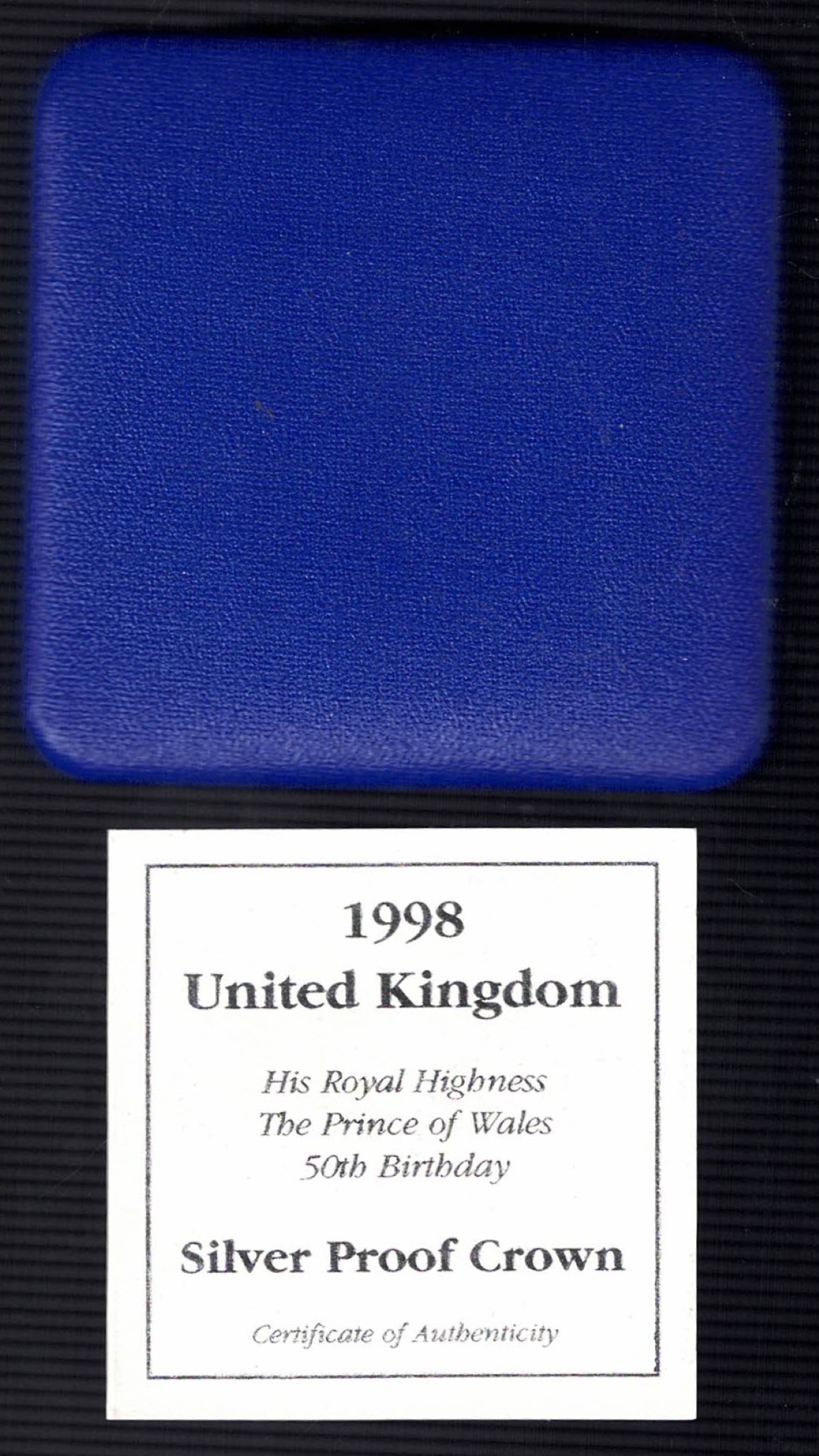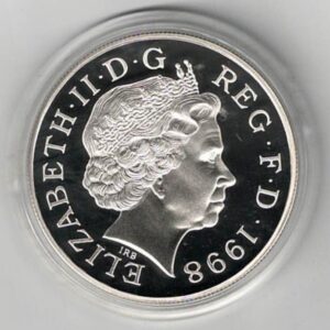 1998 Five Pound Silver Proof Coin ‘His Royal Highness The Prince of Wales 50th Birthday’, In Near Mint Condition.
