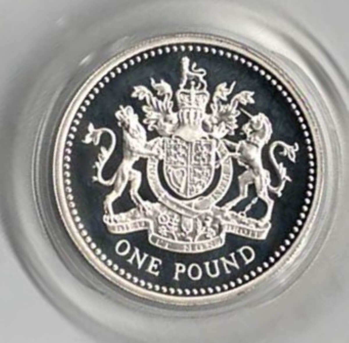 1998 One Pound Silver Proof ‘Royal Arms’ Coin In Near Mint Condition.