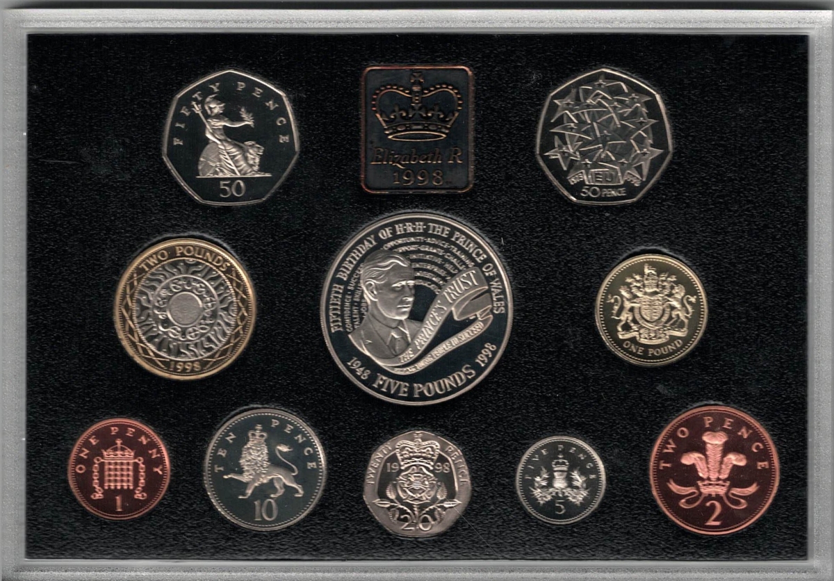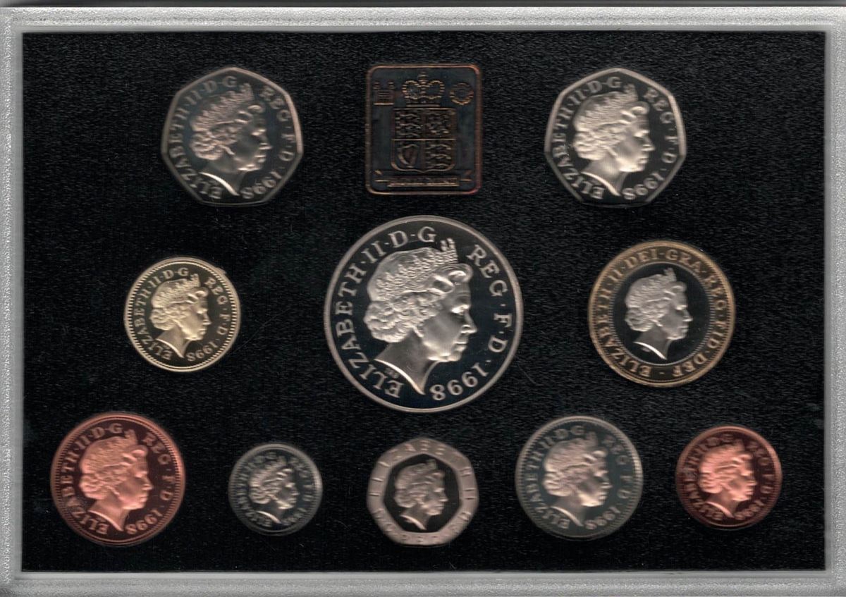 1998 Royal Mint Base Metal Deluxe Ten Coin Proof Set In Near Mint Condition.
